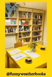 Knowing my obsession and extreme love for libraries and bookshops, you’ll understand how excited I was last November when I realised a bookshop was opening down the road from me. I waited with baited breath till they opened their yellow door and since Funny Weather Books opened across from Hampstead Heath, I’ve ordered all my TBRs from the lovely Celeste and Ed. I’ve proofread my manuscripts, written chapters, banged my head, and started over on their back table to an amazing soundtrack. It’s a bookshop! It’s wonderful! The coffee’s great! And Echo and I are welcome!